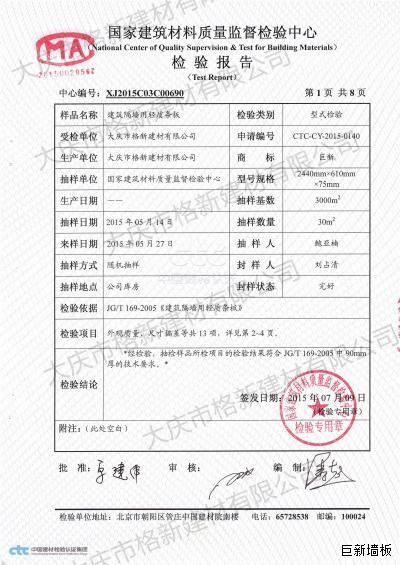 巨新墻板90型墻材是建筑行業的新型墻體材料,產品主要應用于現代樓宇框架結構中的室內與室外隔墻。巨新墻板與普通砌體相比在隔音、防火、保溫、防潮、抗震性能上更具有優越性。巨新牌輕質復合墻板的各項性能,符合國標GB/T23451-2023,行標JG/T169-2016技術要求。